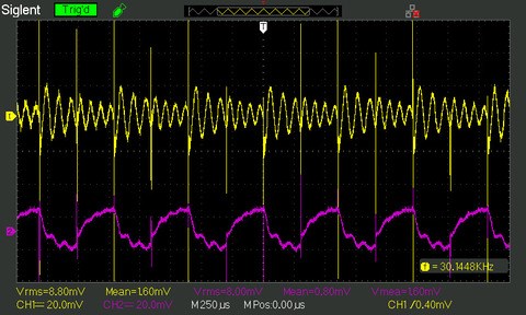 Input pulses; I'm sending square waves at the input coils at around 50% dutycycle.