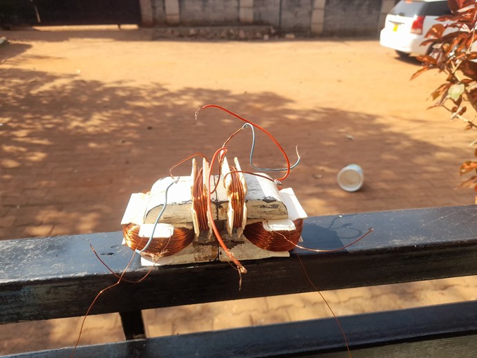 Input coils 150 turns on each. Output coils 500 turns on each Neodymium magnets at the centre.