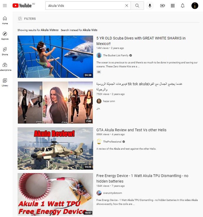 NOTE: YouTube has Censored: Akula Vids! No results if one searches for Akula Vids on YouTube!